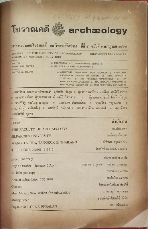 The Museum of the Faculy of Archaeology by Prof. M.C. Subhadradis Diskul, Archaeology Exhibition of the Faculty of Archaeology in 1973. 7 Articles of Archaeology. Vol. 5.1/ 1973