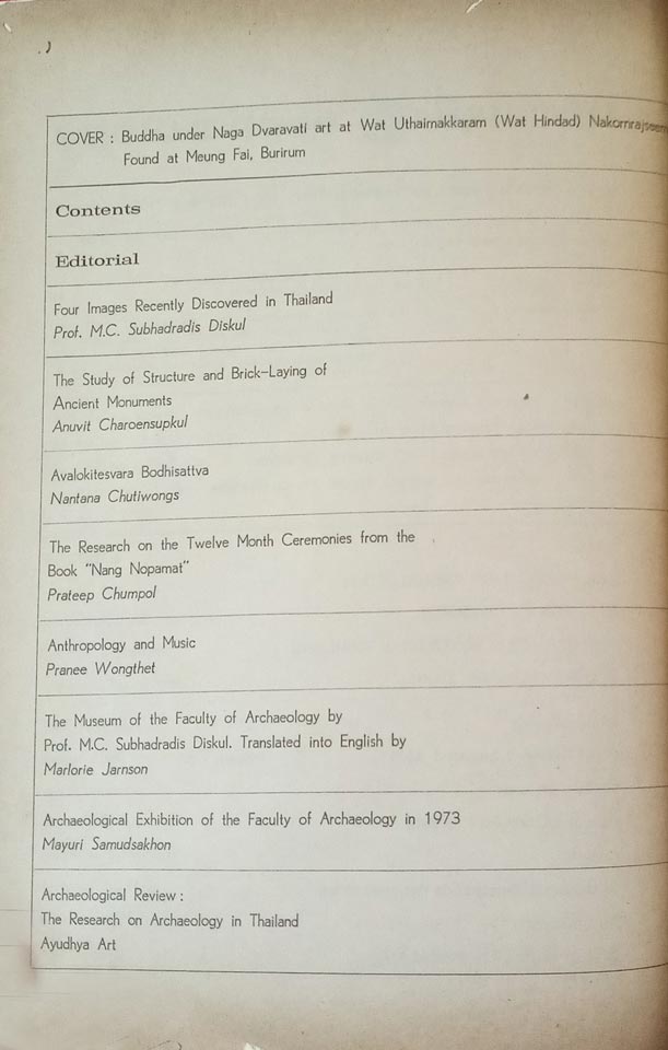 Four Images Recently Discovered in Thailand, The Study of Structure and Brick-Laying of Ancient Monuments, Avalokitesvara Bodhisattva, The Research on the Twelve Month Ceremonies from the Book "Nang Nopamat'' Anthropolo