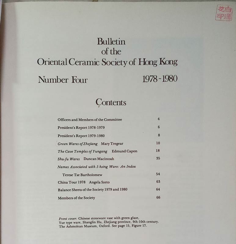 4 Articles of Bulletin of the Oriental Ceramic Society of Hong Kong. Vol. 4 / 1978-1980