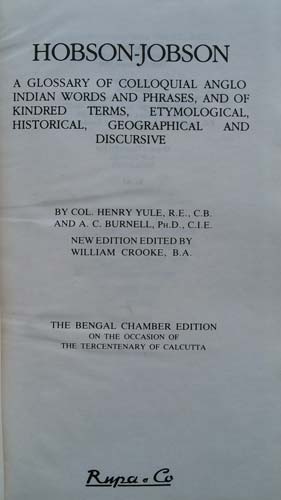 Hobson-Jobson. A Glossary of Colloquial Anglo-Indian Words and Phrases and of Kindred Terms, Etymological, Historical Geographical and Discursive