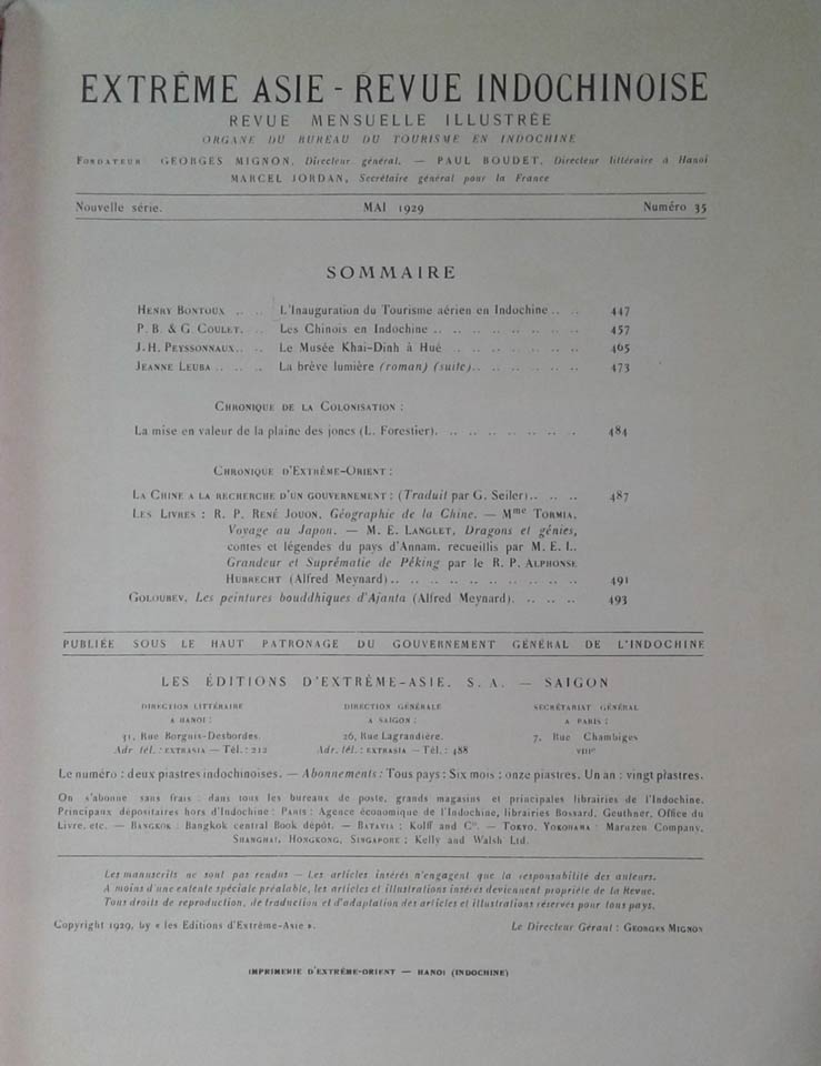 Article of Extreme Asie: Revue Indochinoise. Mai 1929/35