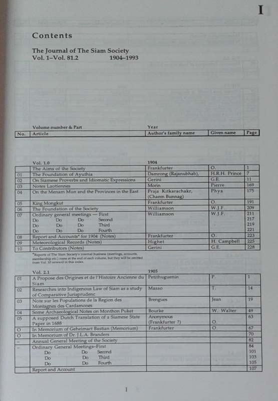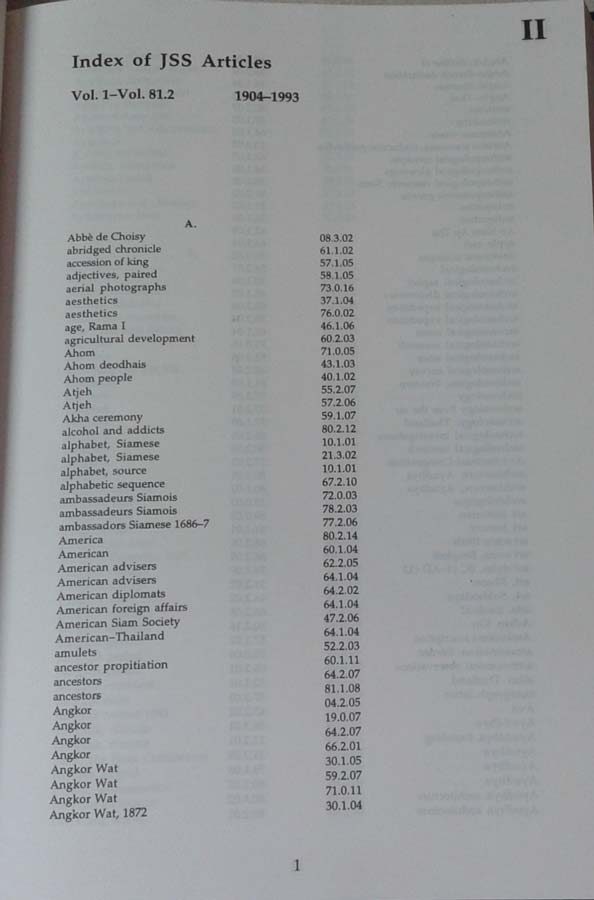 Index the Journal of the Siam Society 1904-1993 & the Siam Society Newsletter1985-1989