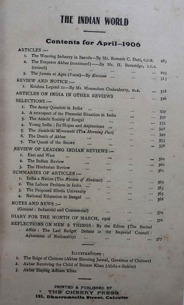 A Monthly Review of Indian Politics & Economics, Arts & Industries, History & Literature. Vol. 3. April-1906 No. 13.