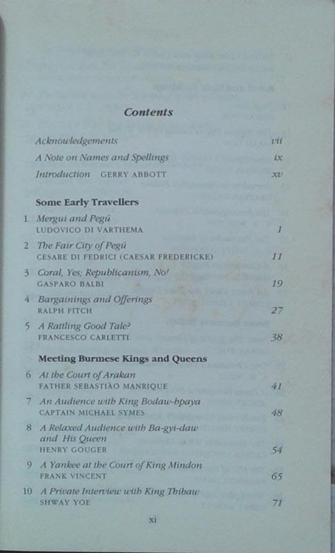 Protected by jungle-covered mountain ranges, the lands ruled by the Burmese Court were for a long time jealously guarded by kings who chose to remain aloof from the outside world. With the coming of the Age of Steam access to the sequestered kingdom was much easier, and when it fell prey to British imperialism the country was “opened upâ€. Nevertheless, soon after becoming an independent republic the country once more pursued a policy of limited foreign contact. One consequence of such geographical and cultural insulation is that most outsiders are uninformed about the country now known as Myanmar. This anthology contains sequences of fascinating information covering almost four centuries of Burmese history. The passages are drawn from travelers’ accounts, many of which are rare documents or books that are difficult to come by. Tourists, academics, and students alike will find a wealth of interesting detail in its pages.