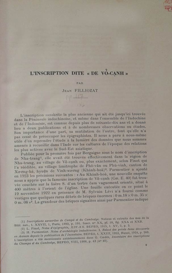 Inscription Dite . Notes sur Stele de Vo-Canh, L'
