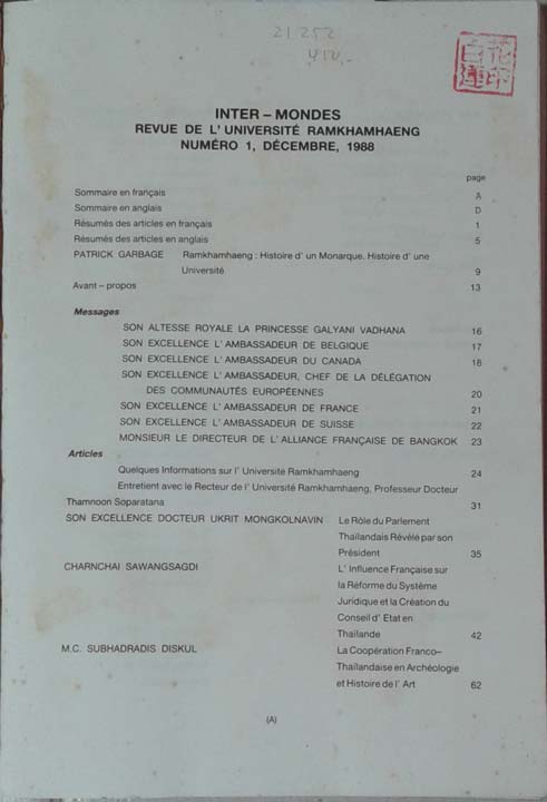 Inter-Mondes Revue de L'universite Ramkhamhaeng Vol. 1.1