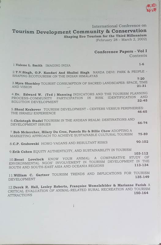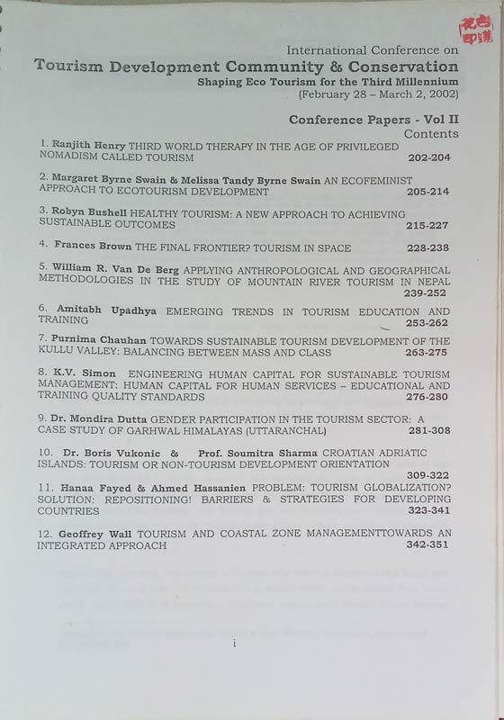 International Conference on Tourism Development Community & Conservation, shaping ECO Tourism for the Third Millennium (Year of Mountains 2002) 2 Vols. (Year of ECO Tourism 2002)