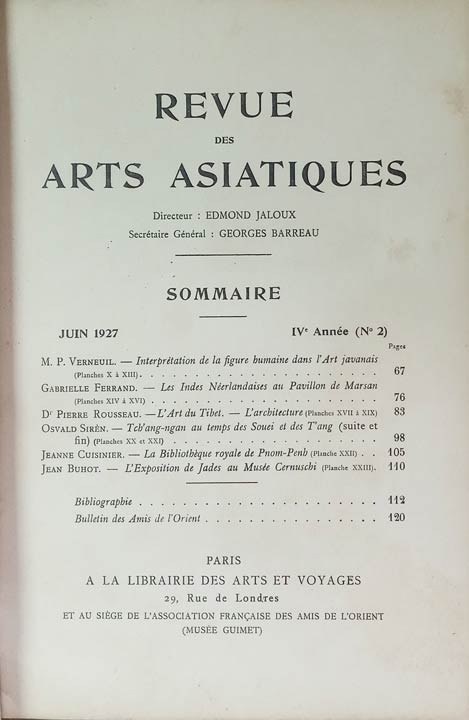 l'Exposition de Jades au Musee Cernuschi. 6 Articles of Revue des Arts Asiatiques (Juin 1927) IVme Annee. No. 2