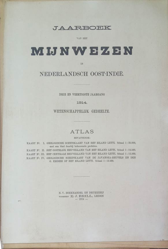Jaarboek van Het Mijnwezen in Nederlandsch Oost-Indie drie en Veertigste Jaagang 1914 Wetenschappelijk Gedeelte: Atlas Bevattende: 1. Geologische Schetskaart van Het Eiland Letti.Schaal 1:25.000