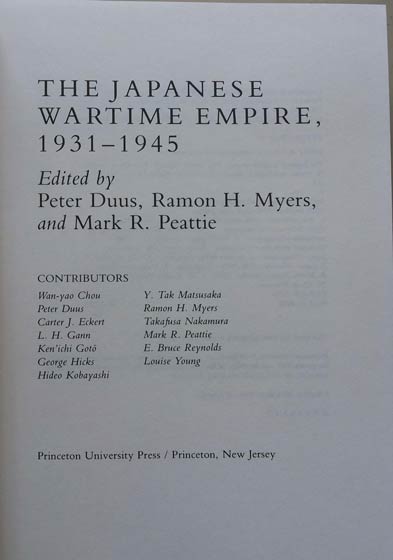 | AUTHOR | Duus, Peter & Ramon H. Myers & Mark R. Peattie |