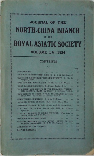 Journal of the North-China Branch of the Royal Asiatic Society for the Year 1924 Vol. LV.