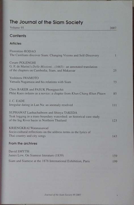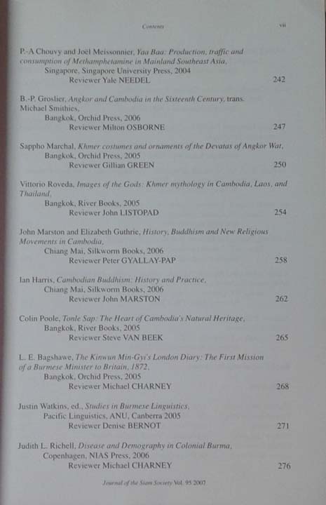 7 Articles of Journal of the Siam Society and other Authors, and titles