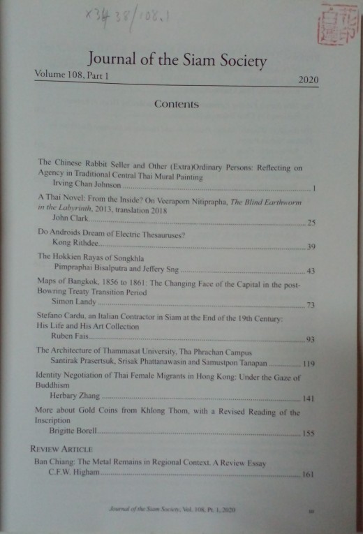 Journal of the Siam Society Volume 108, Part 1, 2020