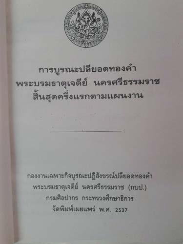 Karn Burana Plee-Yod Thongkam Phra Borommathat chedi Nakhonsri Thammarat, Khueng Raek 2537: First half of Restoration Pinnacle of Stupa at Nakonsri Thammarat Province, 1994