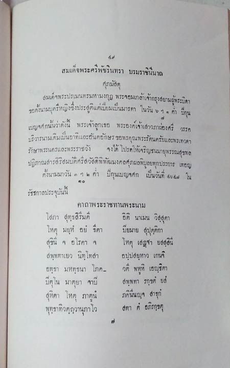 Kata Phra Ratchaniphon nai Phrabath Somdej Phra Chomkao Chaoyuhua Phra Ratchatan Phranam Phraratcha Orot Thida: A Pali verse for names in the Royal Family by King Rama 5 to Prince and Princess