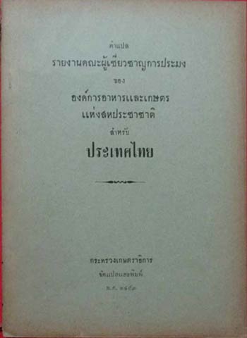 Kham Pae Rai Ngan Khana Phu Chiaw Chan khong Aong kan Arhan lae Kaset haeng Sahaprachachat samrab Prathet Thai: Translated report the Expert team of Food and Agriculture Organization for Thailand