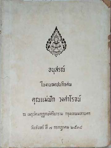 A Funeral book of Mae Fuk Wongsarot, (Mother of Urai Wongsarot Who worked in Customs Department)
