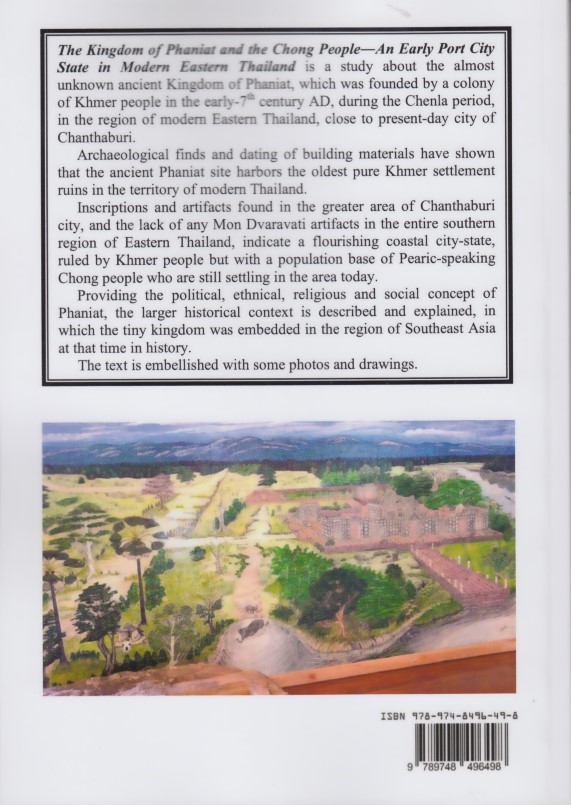 The Kingdom of Phaniat and the Chang People - An Early Port City State in Modern Eastern Thailand is a study about the almost unknown ancient Kingdom of Phaniat, which was founded by a colony of Khmer people in the early 7th centrury AD, during the Chenla period, in the region of modern Eastern Thailand, close to present-day city of Chanthaburi. Archaeological finds and dating of building materials have shown that the ancient Phaniat sie harbors the oldest pure Khmer settlement ruins in the territory of modern Thailand. Inscriptions and artifacts found in the greater area of Chanthaburi city, and the lack of any Mon Dvaravati artifacts in the entire southern region of Eastern Thailand, indicate a flourishing coastal city-state, ruled by Khmer people but with a population base of Pearic-speaking Chong people who are still settling in the area today. Providing the political, ethnical, religious and social concept of Phaniat, the larger historical context is described and explained, in which the tiny kingdom was embedded in the region of Southeast Asia at that time in history.