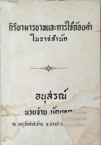 Kiriya Marayat lae Karnchai Toikam Nai Rajasamnak- How to Behave and Use Proper Words in the Royal Palace
