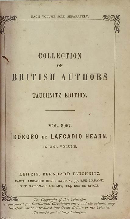 Kokoro: Collection of British Authors Tauchnitz Edition Vol. 3957