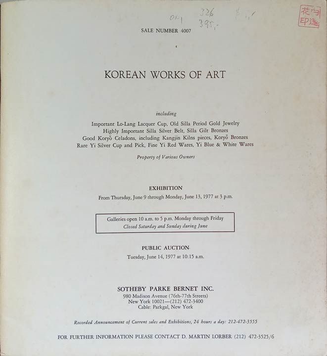 Korean Works of Art: Including Important Lo-Lacquer Cup, Old Silla Period Gold Jewelry Highly Important Silver Belt, Sille Gilt Bronzes Good Koryo Celadons, icluding Kangjin Kiln Pieces, Koryo Bronzes Rare Yi Silver Cup and Pick, Fine Yi Red