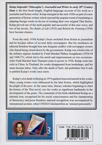 Kulap Saipradit ('Siburapha'): Journalist and Writer in early 20th Century Siam is the first book-length, English-language account of his work as a journalist and fiction writer. Kulap emerged in the mid-1920s as part of a new generation of fiction writers which rejected the popular trend of translating or adapting foreign works in favour of creating their own original Thai stories. Kulap proved one of the most popular and successful of this new wave, and two of his novels, The Battle of Life (1932) and Behind the Painting (1938) have become classics.