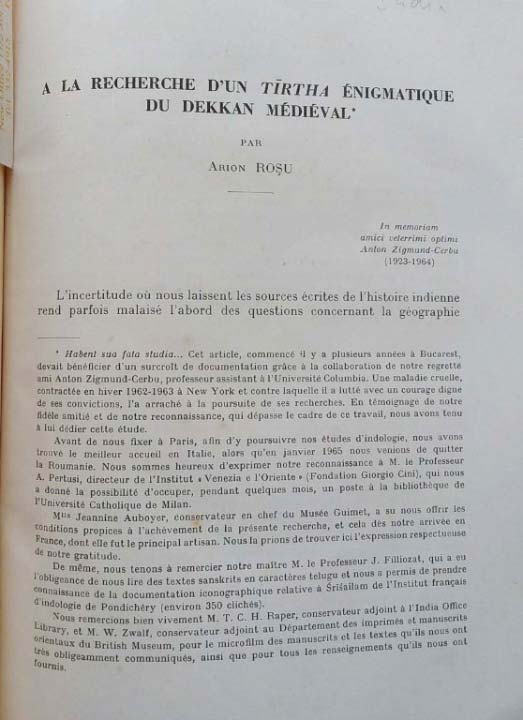 la Recherche d'un Tirtha Enigmatique du Dekkan Medieval, A