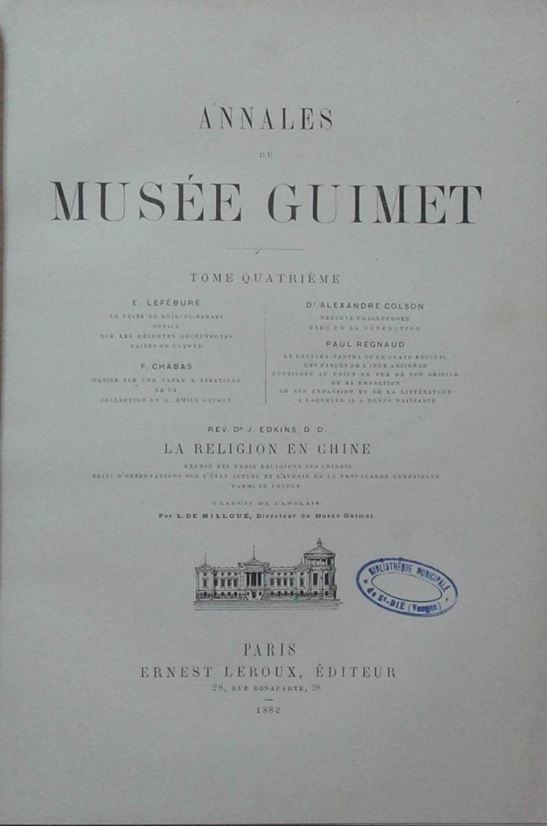 La Religion en Chine: Annales du Musee Guimet Tome Quatrieme