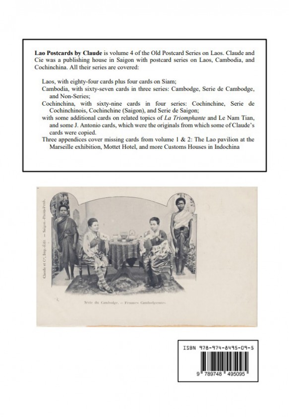 Lao Postcards by Claude is volume 4 of the Old Postcard Series on Laos. Claude and Cie was a publishing house in Saigon with postcard series on Laos, Cambodia, and Cochinchina. All their series are covered: