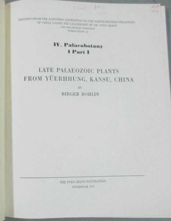 Late Palaeozoic Plants from Yueerhhung, Kansu, China