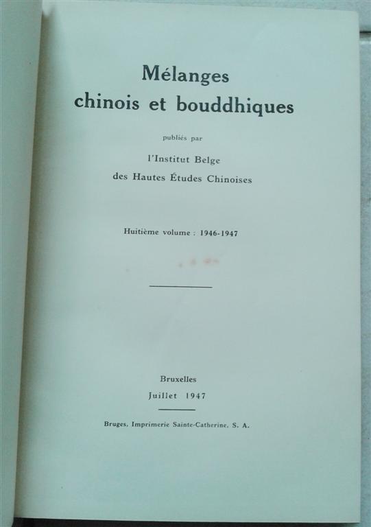 of Tattvasangraha (120 pp) 4 Articles of Melanges Chinois et Bouddhiques Vol. 1946-1947
