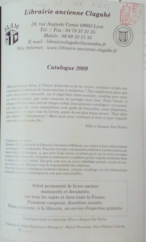 Librairie ancienne Clagahe Lyon Catalogue 2009