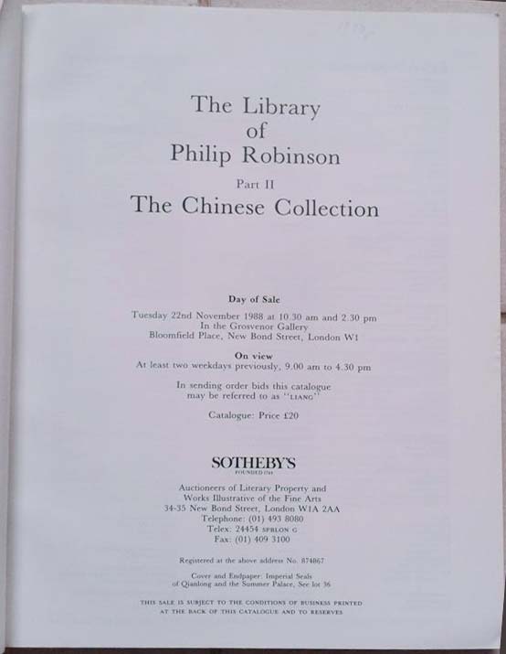 Library of Philip Robinson Part 2: The Chinese Collection, The