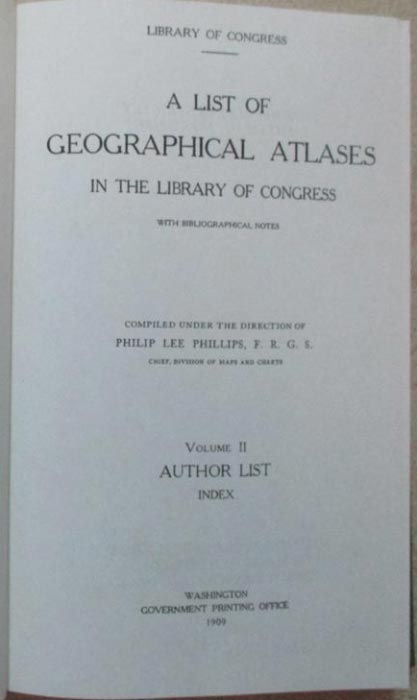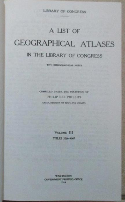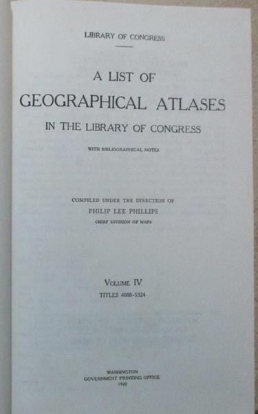 List of Geographical Atlases in the Library of Congress, A Vol. 1-4 Vol. 1; Atlases Vol. 2; Author List Index
