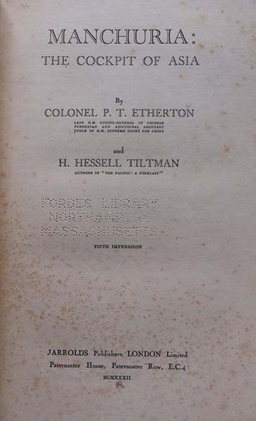 | AUTHOR | Etherton, Colonel P. T. & H. Hessell Tiltman |