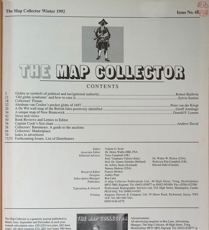 12 Articles of The Map Collector Winter 1992 No. 61 many Titles and mnat other