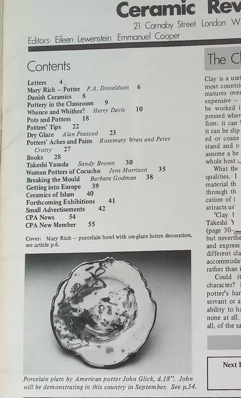 Mary Rich-Potter, Danish Ceramics, Pottery in the Classroom, Whence & Whither?, Pots and Potter, Potter's Tips, Dry Glaze, Potters's Aches & Pains, Ceramics of Islam