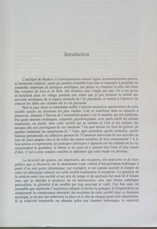 Les arts du temps et du spectacle dans la societe madouraise (Indonesie)