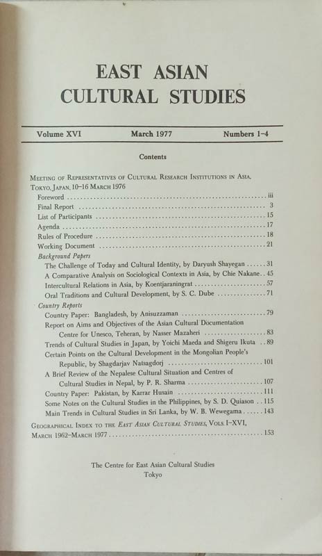 Article of East Asian Cultural Studies Vol. 14 March 1977 No.1-4