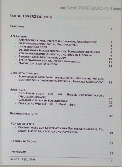 Minor: Journal about Turtles, 7 Jahrgang - Heft 4 - November 2008