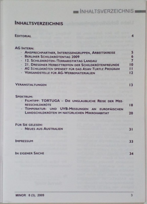 Minor: Journal about Turtles, 8 Jahrgang - Heft 3 - August 2009