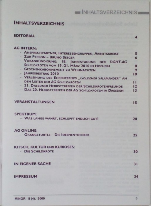 Minor: Journal about Turtles, 8 Jahrgang - Heft 4 - November 2009