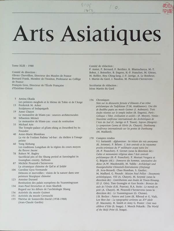 4 Articles in Arts Asiatiques Vol. 43, 1988