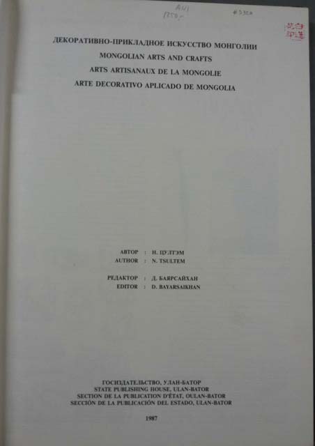 | Ulan-Bator, 1987 (English+French+Russian text) | |