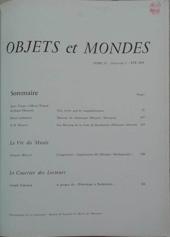 Article in Objets et Mondes Tome IV, Fasc. 2