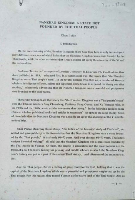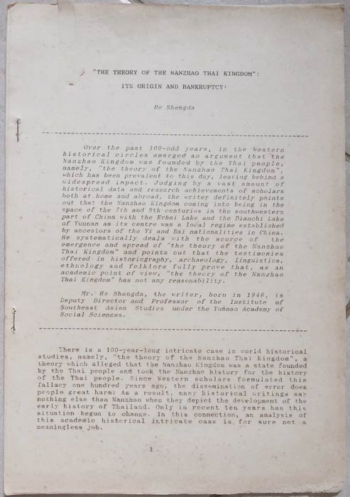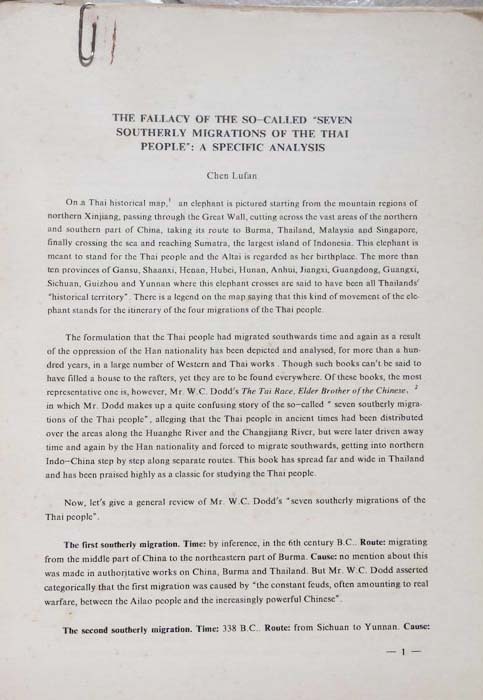 South, the Fallacy of the So-Called "Seven Southerly Migrations of the Thai People ": A Specific Analysis, The Mode of Productiona for the Mountain People in Thailand, Whether Kublai Kham's Conquest of the Dali,. (lot of 12 items)