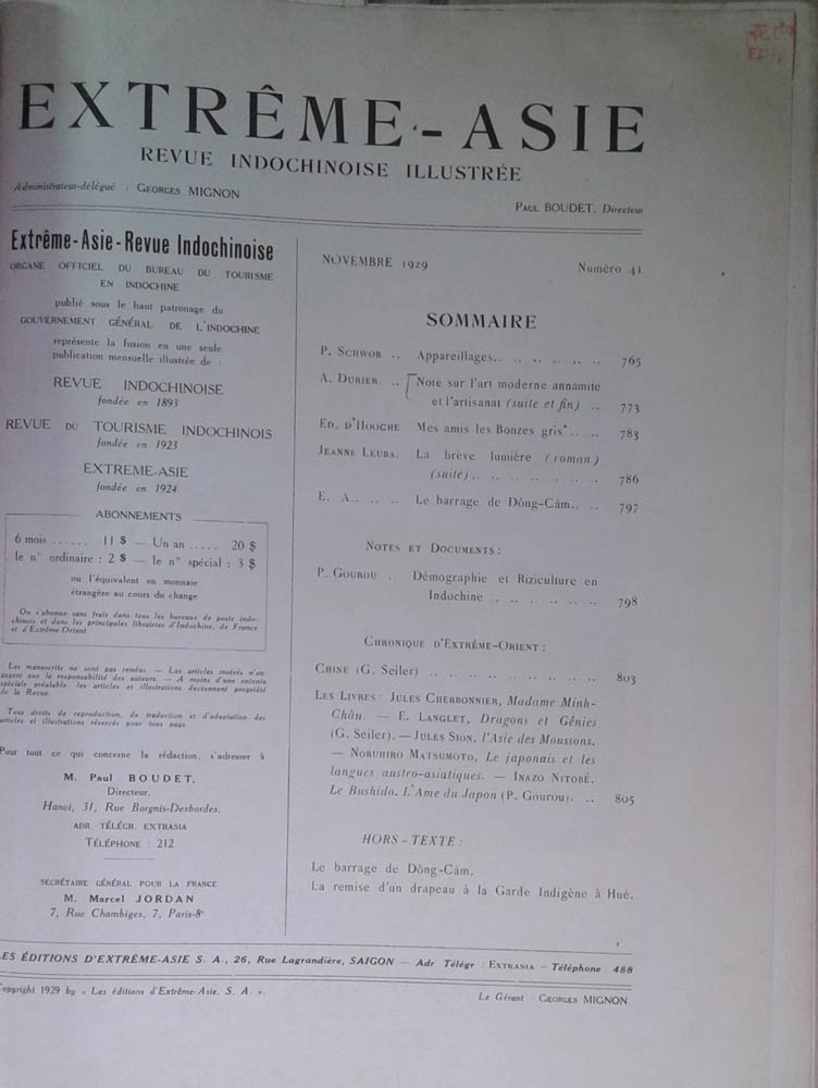 Articles of Extreme-Asie Revue Indochinoise Illustree. Novembre 1929/41.