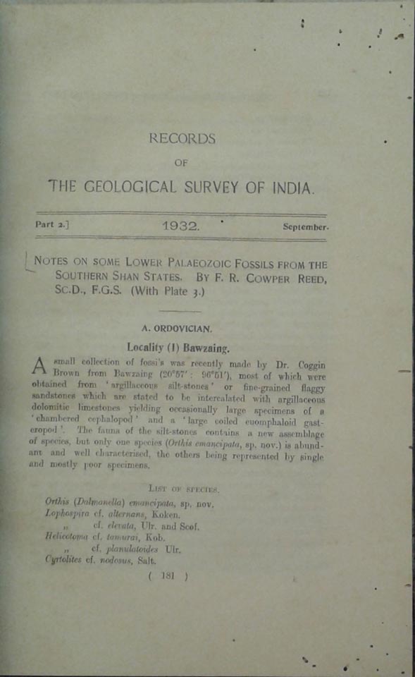 Notes on some Lower Palaeozoic Fossils from the Southern Shan States