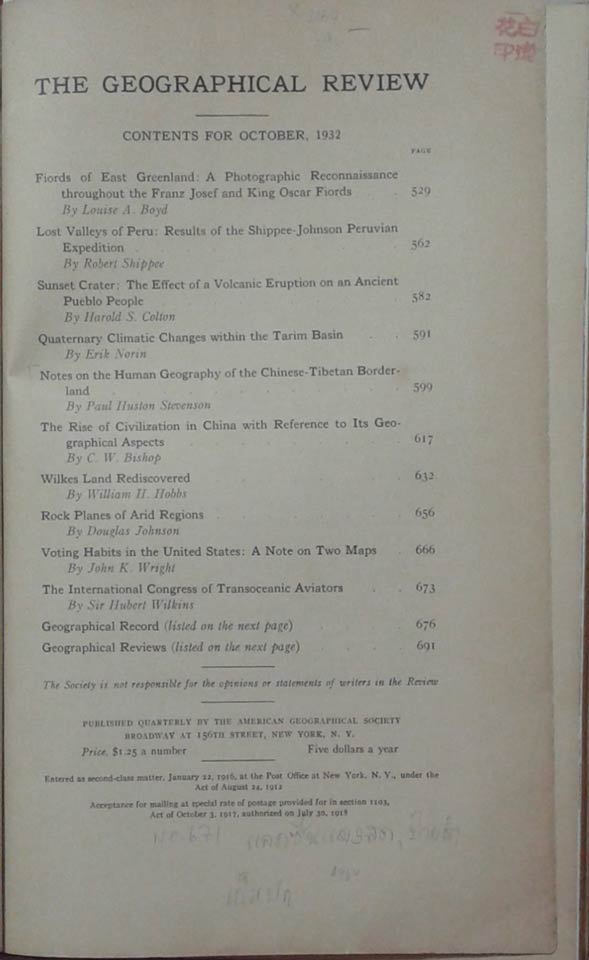 Article of The Geographical Review, October 1932 (17 pp) and 11 others articles