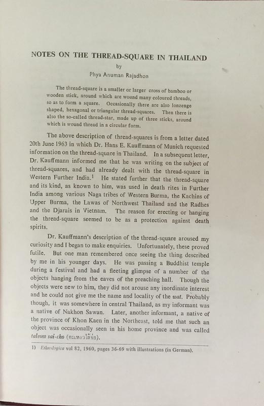 Notes on the Thread-Square in Thailand, The Lawa Guarian Spirits of Chiengmai Negotiations Regarding the Cession of Siamese Malay States, The Thai British Archaeological Expedition A Preliminary Report on the Wpork of the First